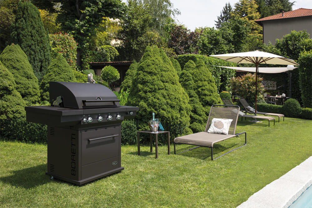 Boretti Maggiore är en elegant designad gasolgrill. Maggiore är lätt att flytta och har Boretti-kontrollrattar precis som våra spisar. Framsidan av utomhusversionen har en lucka likt en ugnsdörr som fungerar som ett praktiskt förvaringsutrymme. Maggiore har även tre huvudbrännare, en sidobrännare och två infraröda brännare (en baktill och en undertill) så att du kan laga varje rätt till perfektion. Som de flesta Boretti-grillar kommer Maggiore också med två grillgaller av gjutjärn och en stekplatta i gjutjärn. Maggiore gasolgrill har ett praktiskt kryddställ så att du lättare har allt till hands för att experimentera med nya spännande grillsmaker. Det finns även en integrerad avfallspåse som gör det enkelt att hålla rent runt grillen.